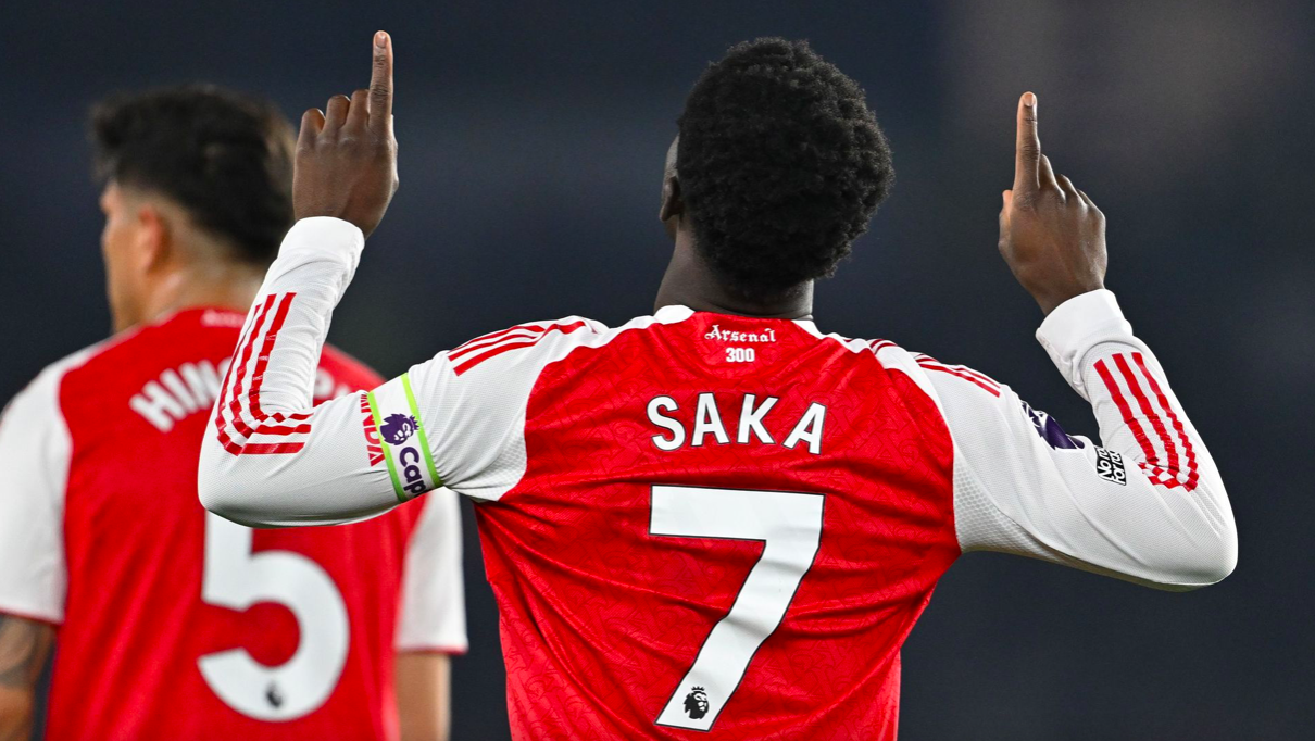 萨卡已经为枪手打进59球,超越亨利,成为25岁之前为枪手进球最多的球员。