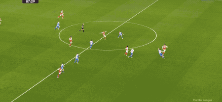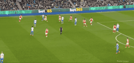 第88分钟,布莱顿造越位失误,哈弗茨选择自己小角度射门,维尔布鲁根封住了近角。