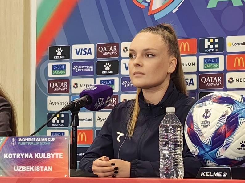北京时间3月5日,女足亚洲杯小组赛乌兹别克斯坦vs中国的赛前新闻发布会在西悉尼体育场进行。乌兹别克斯坦队主教练库尔比特携球员哈比布拉耶娃出席。