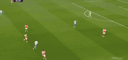 第88分钟,布莱顿造越位失误,哈弗茨选择自己小角度射门,维尔布鲁根封住了近角。