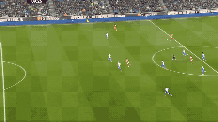 第2分钟,拉亚的传球力量太小,直接被巴莱巴抢断,巴莱巴直接吊射,皮球越过拉亚,加布里埃尔头球解围。