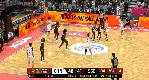中国女篮王思雨17分5板4助,陈玉婕14分3板;南苏丹女篮阿杜特-布尔加克18分6板2助,玛丽亚-加克登17分6板。